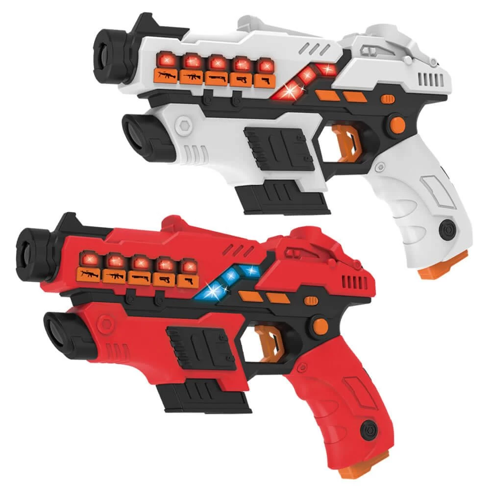 Deze lasergame set bestaat uit 2 KidsTag Plus lasergame pistolen met één KidsTag Projector.