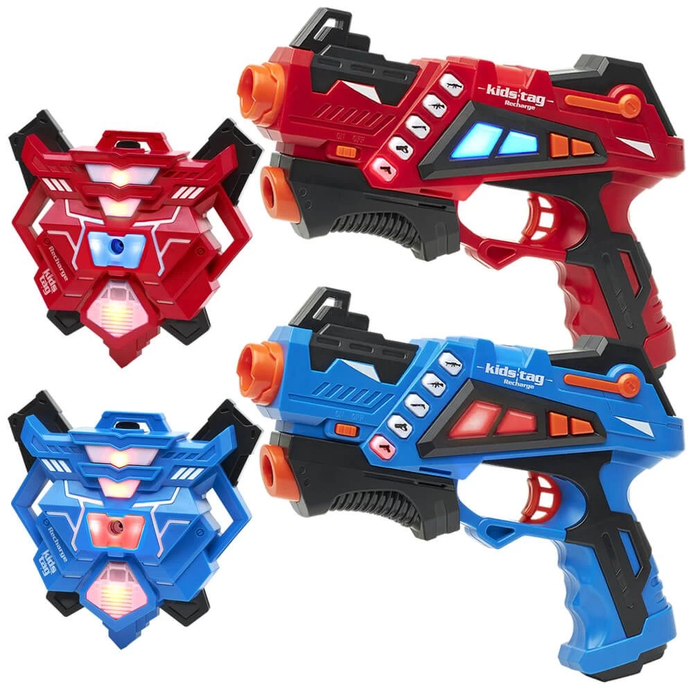 2 KidsTag Recharge P1 Laserguns + 2 Waterdamp Vesten Rood/bl