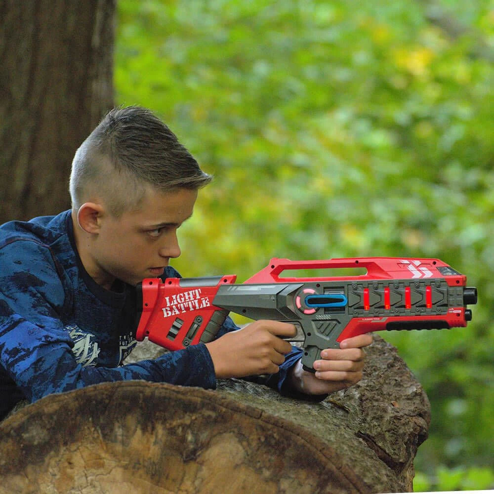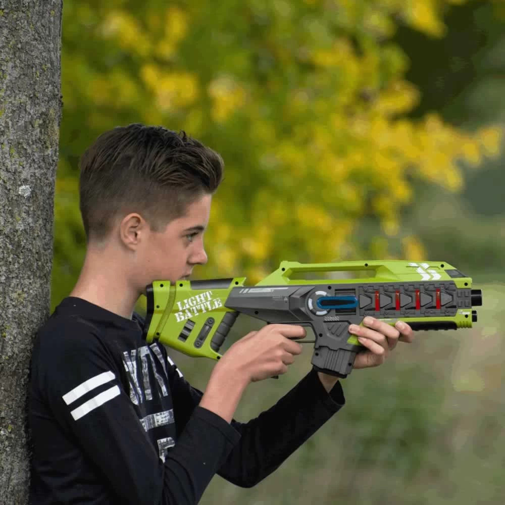 Wil jij de spanning van een lasergame hal thuis beleven? Met deze lasergame set van Light Battle kun je lasergamen waar en zo vaak je maar wilt! Light Battle Connect is de nieuwe generatie lasergame speelgoed. Met Light Battle Connect laserguns heb je de optie om een vest te koppelen die communiceert met de lasergun, de vesten worden in deze set niet meegeleverd en zijn los verkrijgbaar. Wanneer je ervoor kiest om zonder vest te spelen, dan kun je elkaar op het lasergeweer raken. Deze Light Battle Connect laserguns zijn ook voorzien van een Anti-Cheat functie waardoor je niet meer vals kunt spelen door het geweer tijdens het spel uit te zetten en weer aan. Dit houdt het spel eerlijk en leuk voor iedereen. Let the battle begin!