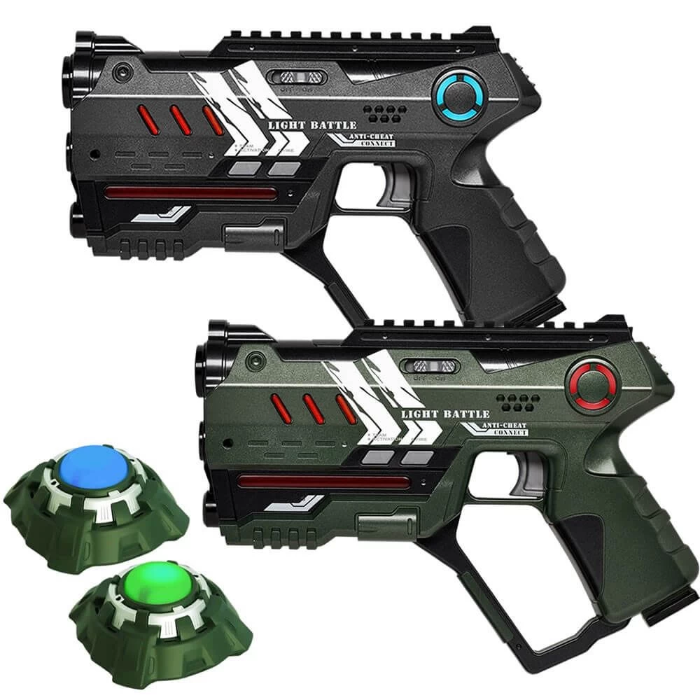 Met deze supergave laserguns verandert je eigen huis of straat in een echte lasergame arena! Waar je met andere merken laserguns gemakkelijk nieuwe levens kunt krijgen door de lasergun tijdens de laser games uit en aan te zetten, is valsspelen bij deze laserguns niet meer mogelijk. Deze Light Battle Connect laserguns hebben nog een unieke functie, ze kunnen gekoppeld worden aan een Light Battle Connect vest. Zodra het vest gekoppeld is, wordt de ontvanger van het pistool uitgeschakeld en moet je elkaar op het vest raken. Het vest en lasergun kunnen hierdoor met elkaar communiceren. Het Light Battle Connect vest wordt niet meegeleverd met deze lasergame set en is los verkrijgbaar. Wanneer er zonder vest wordt gespeeld kun je elkaar op de lasergun raken, een vest is dus niet noodzakelijk en kan later altijd nog gekocht worden.