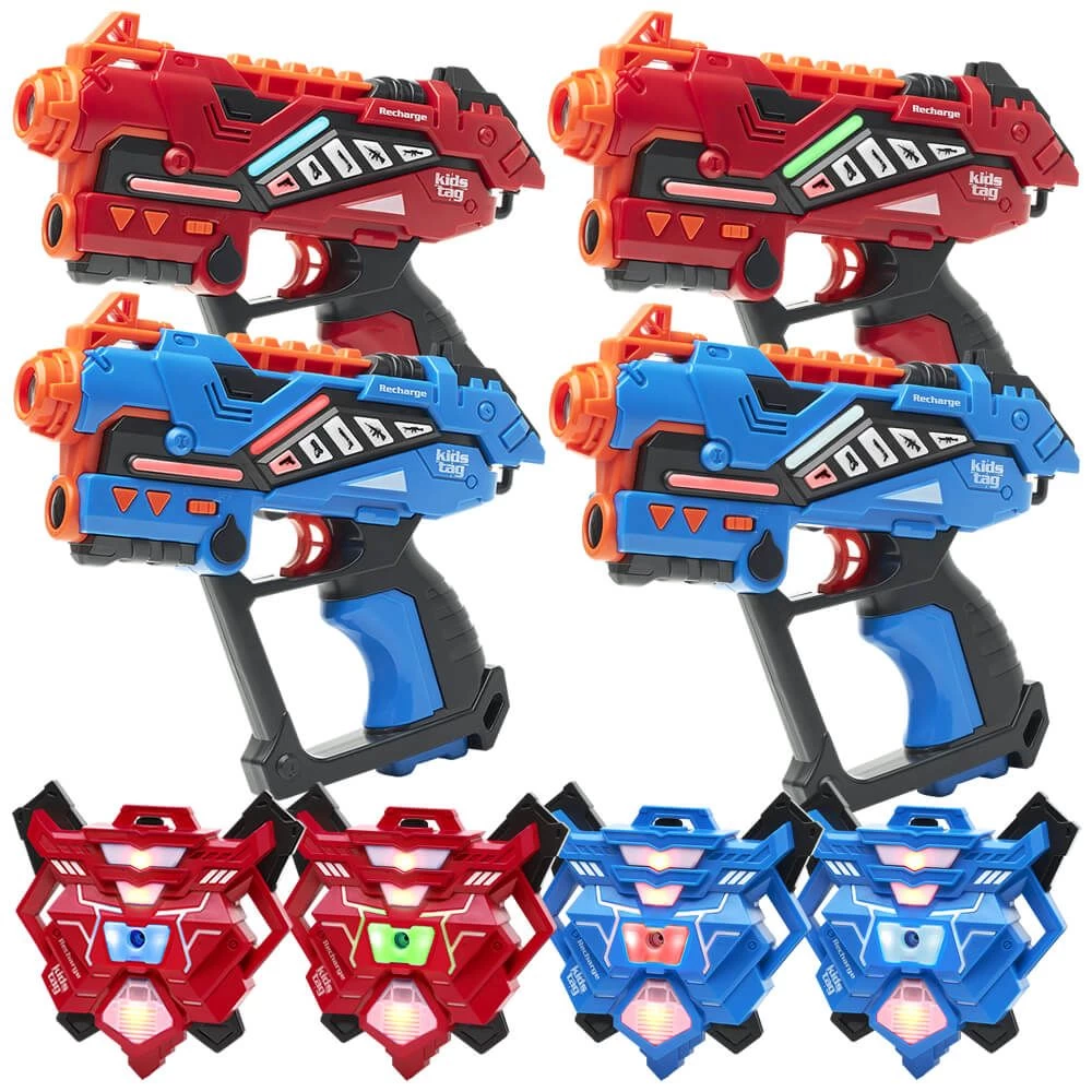 - Deze set met laserguns voor kinderen is uit te breiden met KidsTag display vesten of waterdamp vesten.