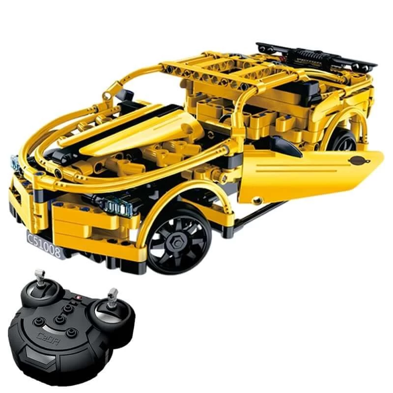 Bouw je eigen supergave bestuurbare RC raceauto met deze Cadabricks technic bouwset. Met zijn geel met zwarte kleuren valt deze stoere bestuurbare auto meteen op! Als deze bestuurbare RC raceauto afgebouwd is kan je er mee racen met behulp van de meegeleverde afstandsbediening. Zo kun je deze gave RC auto aan iedereen laten zien. Ook de deuren en de motorkap kunnen open en dicht, zelfs de spiegels kun je handmatig inklappen. Deze technic bouwset staat voor enorm veel plezier!