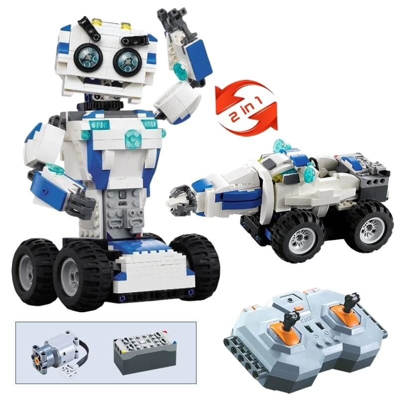 Bouw je eigen kleine robotvriendje en neem hem overal mee naartoe. Met deze technische bouwset van Cadabricks kun je een RC robot bouwen en hem na het bouwen ook echt besturen. Wanneer je uitgekeken bent op je RC Robot kun je hem weer afbreken en van hetzelfde bouwpakket weer een RC Robotauto bouwen. Zo beleef je dus dubbel zoveel speelplezier!