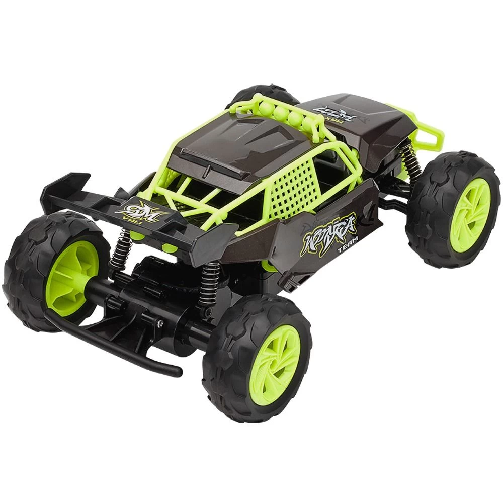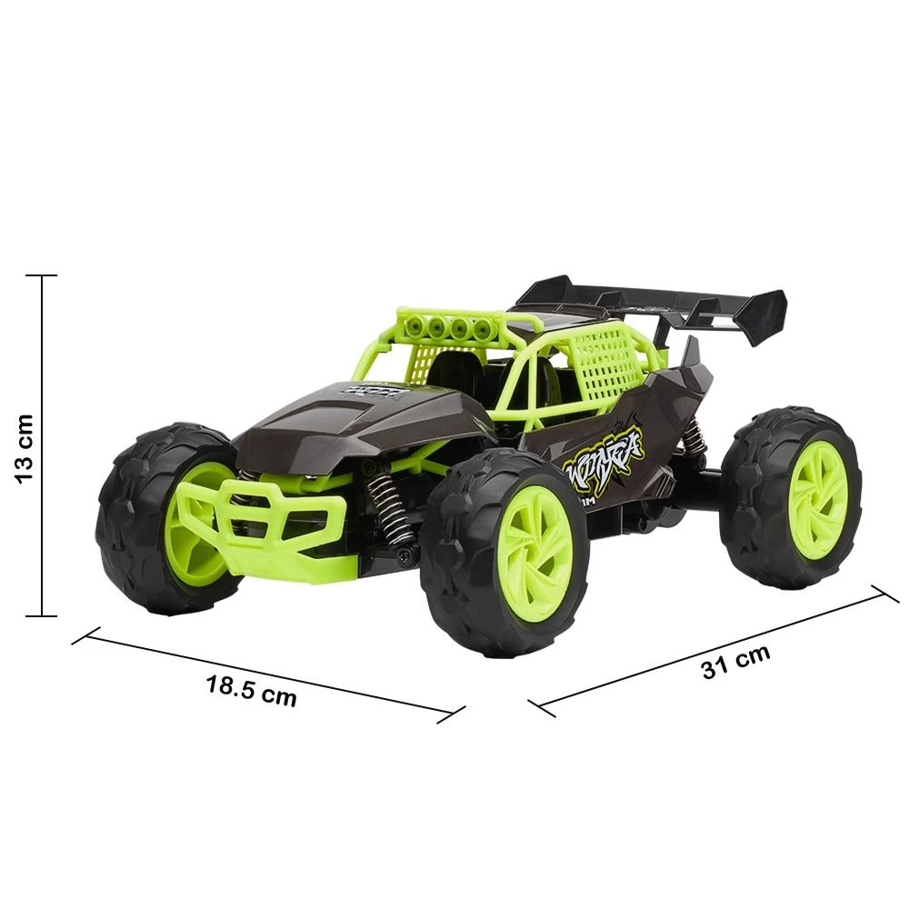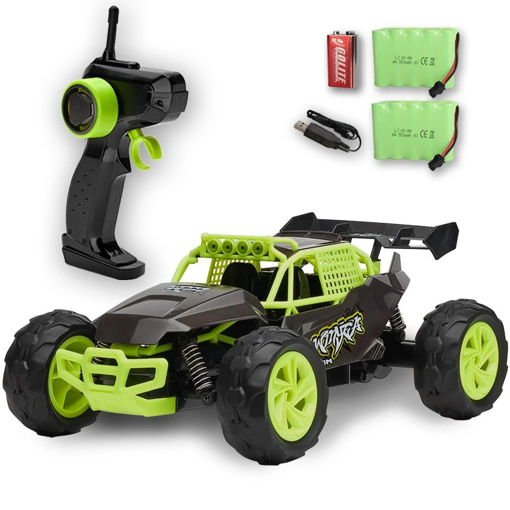 Deze stoere op afstand bestuurbare auto wordt geleverd inclusief 2 accu’s en 9V batterij voor de afstandsbediening. Deze radiografisch bestuurbare auto is gebouwd op een schaal van 1:14 en is verrassend groot en snel voor een RC auto uit deze prijsklasse. De op afstand bestuurbare auto heeft een maximale snelheid van 25 km/h, dit is maximaal aanbevolen snelheid voor de leeftijdsgroep 8 tot 12 jaar. Door de stoere zwart met groene kleurcombinatie zal deze bestuurbare auto overal opvallen. Omdat deze RC auto geleverd wordt met 2 batterijpacks, kun je nog langer blijven spelen dan bij afstandsbestuurbare auto’s van andere merken.