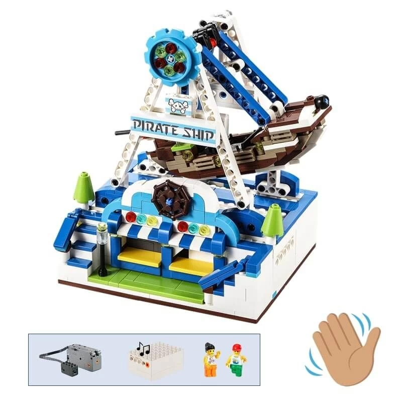 Wie droomt er nou niet van om een eigen pretpark te bouwen? Dit piratenschip mag natuurlijk niet ontbreken in je pretpark of kermis. Met dit technische bouwpakket van Cadabricks kun je één van de bekendste attracties zelf nabouwen. Deze bouwset wordt geleverd met een muziekdoos die je inbouwt en nostalgische kermismuziek speelt. Het piratenschip schommelt ook echt heen en weer en is te starten met de bewegingssensor. Hierdoor kun je nog heel lang met je technische bouwpakket spelen nadat je klaar bent met bouwen!