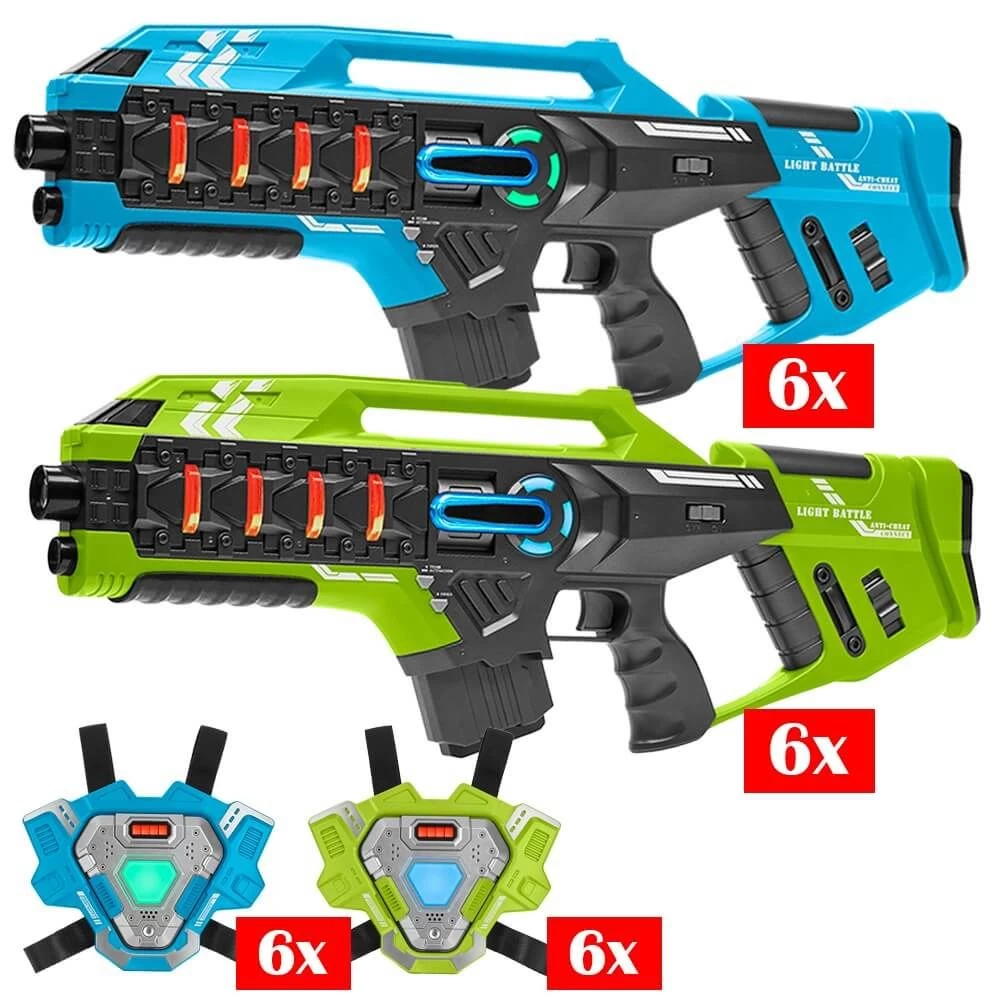 | Inhoud verpakking | 6x Light Battle Connect Mega Blaster blauw 6x Light Battle Connect vest blauw 6x Light Battle Connect Mega Blaster groen 6x Light Battle Connect vest groen Handleiding |