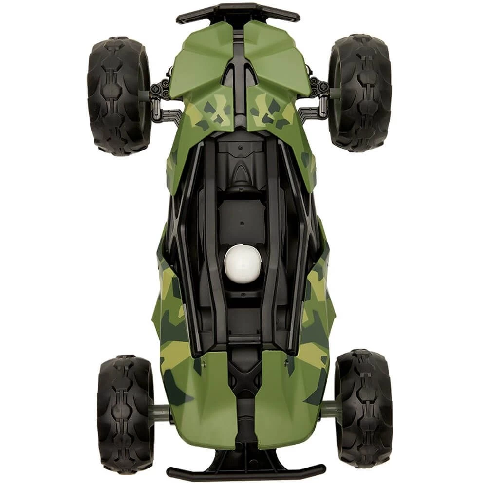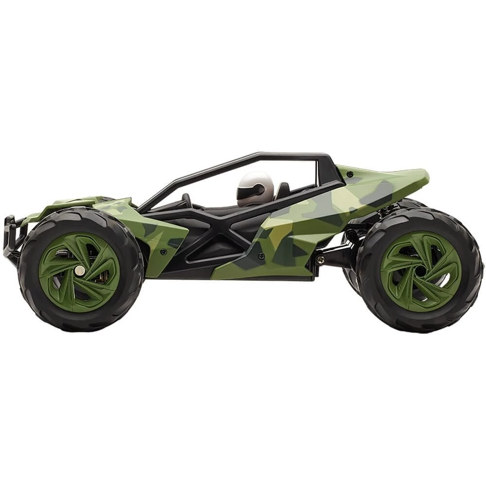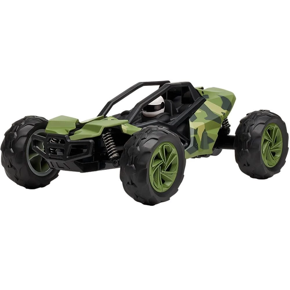 Deze stoere op afstand bestuurbare auto wordt geleverd inclusief 2 accu’s en 9V batterij voor de afstandsbediening, dus je kunnen 2x zo lang spelen. Deze sportieve rc auto in legergroene kleuren is groter dan de meeste andere RC voertuigen in deze prijsklasse. Met een maximale snelheid van 25 km/h is deze op afstand bestuurbare auto prima geschikt voor een leeftijd van 8 tot 12 jaar. Deze auto met afstandsbediening is mede door zijn schokbrekers en rubberen banden met stoere velgen geschikt voor vlakke oppervlaktes, binnen en buiten.