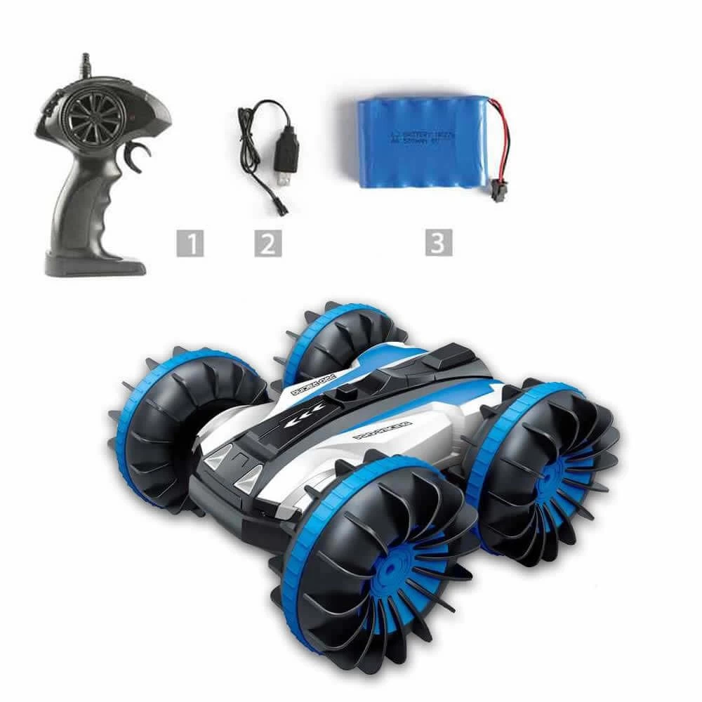 Op het land of in het water, met deze RC Auto kun je op meerdere terreinen plezier beleven! Met deze RC auto kun je de tofste flips maken en 360 graden rond draaien. Ook kan de auto balanceren op de 2 achterbanden om een wheelie te maken. Door de extra grote en speciale banden kan je met gemak meerdere ondergronden aan. Deze stunt auto kan zelfs rijden in de sneeuw of varen in het water!